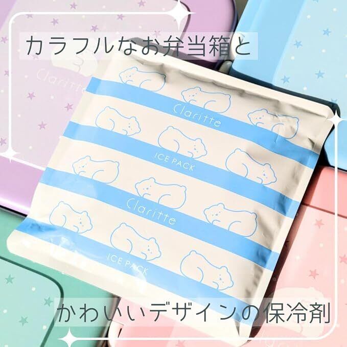 ClaritteのBento Box for Kidsの底部にぴったり収まるサイズ設計。保冷剤が容器の外にはみ出さないので、バッグの中で邪魔にならず、結露でバッグが濡れる心配も軽減します。もちろん一般的なお弁当箱やクーラーバッグにもお使いいただけます。