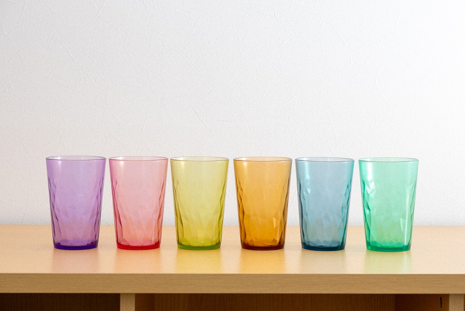 バイオレット、ローズ、ライム、オレンジ、インディゴ、グリーンの鮮やかな6色。家族それぞれが「マイカラー」を選べば、誰のコップか一目瞭然。化粧箱入りなので、引っ越し祝い・結婚祝い・出産祝いなどのプレゼントにもそのままお使いいただけます。